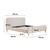 Het bedframe is verkrijgbaar in drie verschillende maten, 90 cm, 140 cm en 180 cm, zodat je de oplossing kunt kiezen die het beste bij je behoeften en ruimte past. Bovendien kun je kiezen uit twee natuurlijke en subtiele kleuren, beige en grijs, die allebei gemakkelijk te combineren zijn met verschillende interieurstijlen