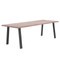 Deze Molly eettafel met 2 planken en zwarte A-poten van metaal meet 240 cm in de lengte, waardoor er ruimte is om 3 stoelen aan elke zijde te plaatsen.